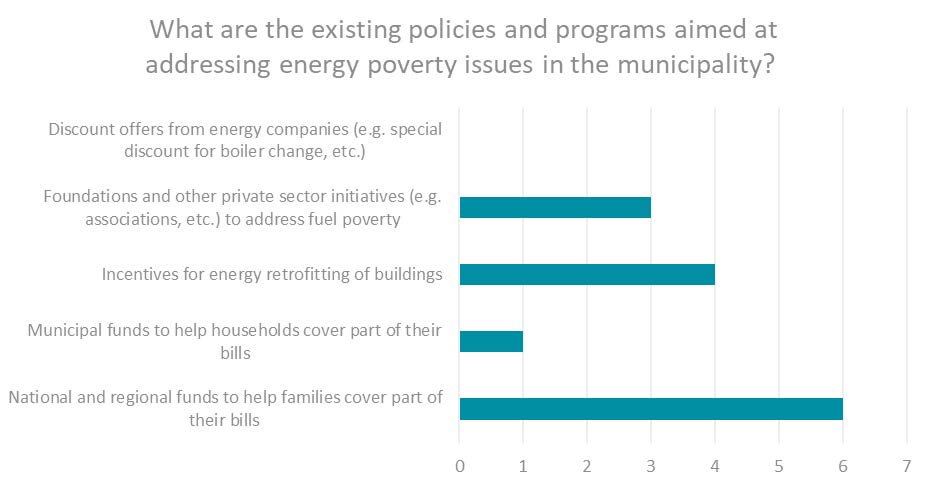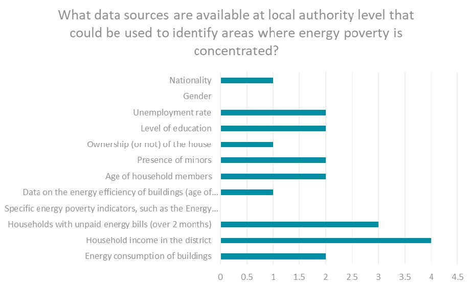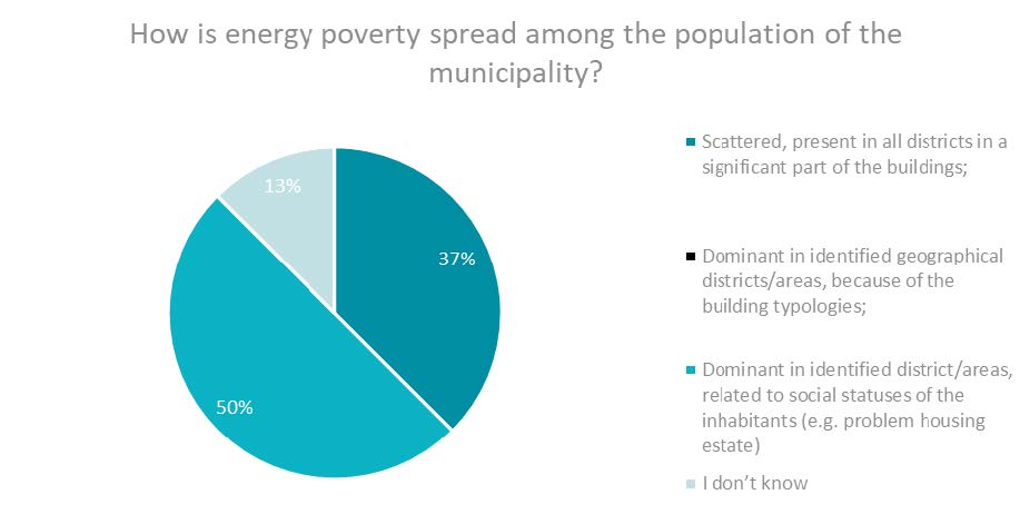 Questa poca incisività nella ristrutturazione si giustifica anche con l’assenza di dati sugli edifici, sull’area e su altri indicatori economici e sociali che aiuterebbero i tecnici e comuni a rilevare in maniera più puntuale quantità e aree dove la povertà energetica è più diffusa, e quindi strutturare azioni mirate. Difatti, le risposte alla domanda di come sia diffusa la povertà energetica, variano tra “alcune zone specifiche della città” a “è diffusa in maniera variegata in tutta la città”. Nessuna delle risposte ha presentato una conoscenza precisa del fenomeno.
