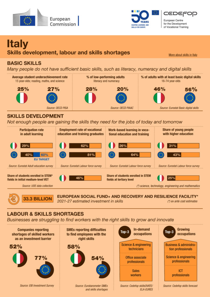 Nonostante l’adozione di politiche europee ambiziose come l’EU Skills Agenda, l’Union of Skills, il Pact for Skills e il Digital Europe Programme, il mercato del lavoro italiano si confronta con criticità strutturali comuni anche ad altri paese europei. In particolare il fenomeno dello skills shortage, ovvero la mancanza di competenze adeguate rispetto alla domanda del mercato, rappresenta un ostacolo concreto alla competitività del sistema produttivo.
