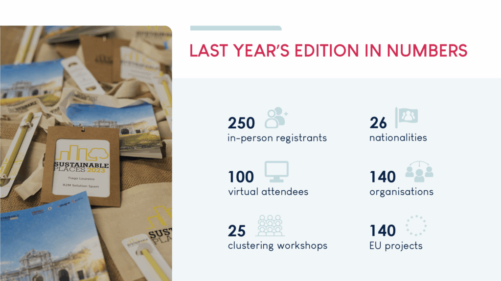 Sustainable Places si distingue per essere una piattaforma ideale per la diffusione di risultati di ricerche, workshop, il clustering di progetti dell’UE e il networking tra stakeholder di ogni tipo. Partecipando a Sustainable Places, avrai l’opportunità di scoprire soluzioni innovative per il tuo settore, costruire relazioni e ampliare le tue opportunità di mercato.